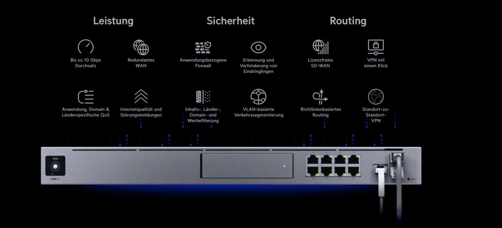 Über die UniFi-Controller-Software lassen sich alle Netzwerkkomponenten – Router, Switches, Access Points, Kameras und Zutrittskontrolle – zentral verwalten. Das spart Zeit und reduziert den Administrationsaufwand, was besonders für kleinere Unternehmen und Selbstständige mit begrenzten IT-Ressourcen ein entscheidender Vorteil ist.