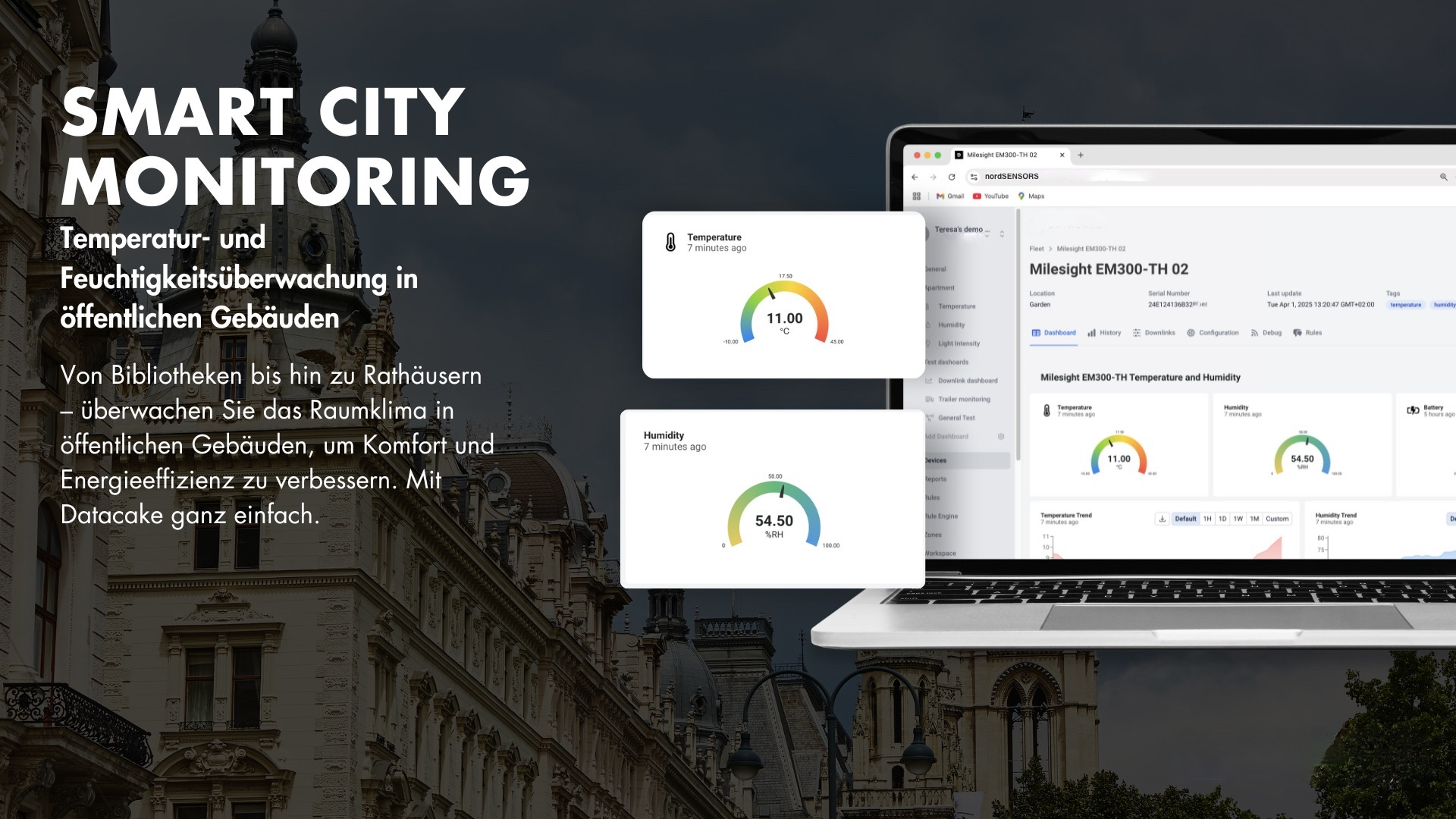 • Umweltüberwachung: Sensoren messen Luftqualität, Wasserqualität, Lärmpegel und andere Umweltparameter, um Gesundheitsrisiken zu minimieren und die Nachhaltigkeit zu fördern.